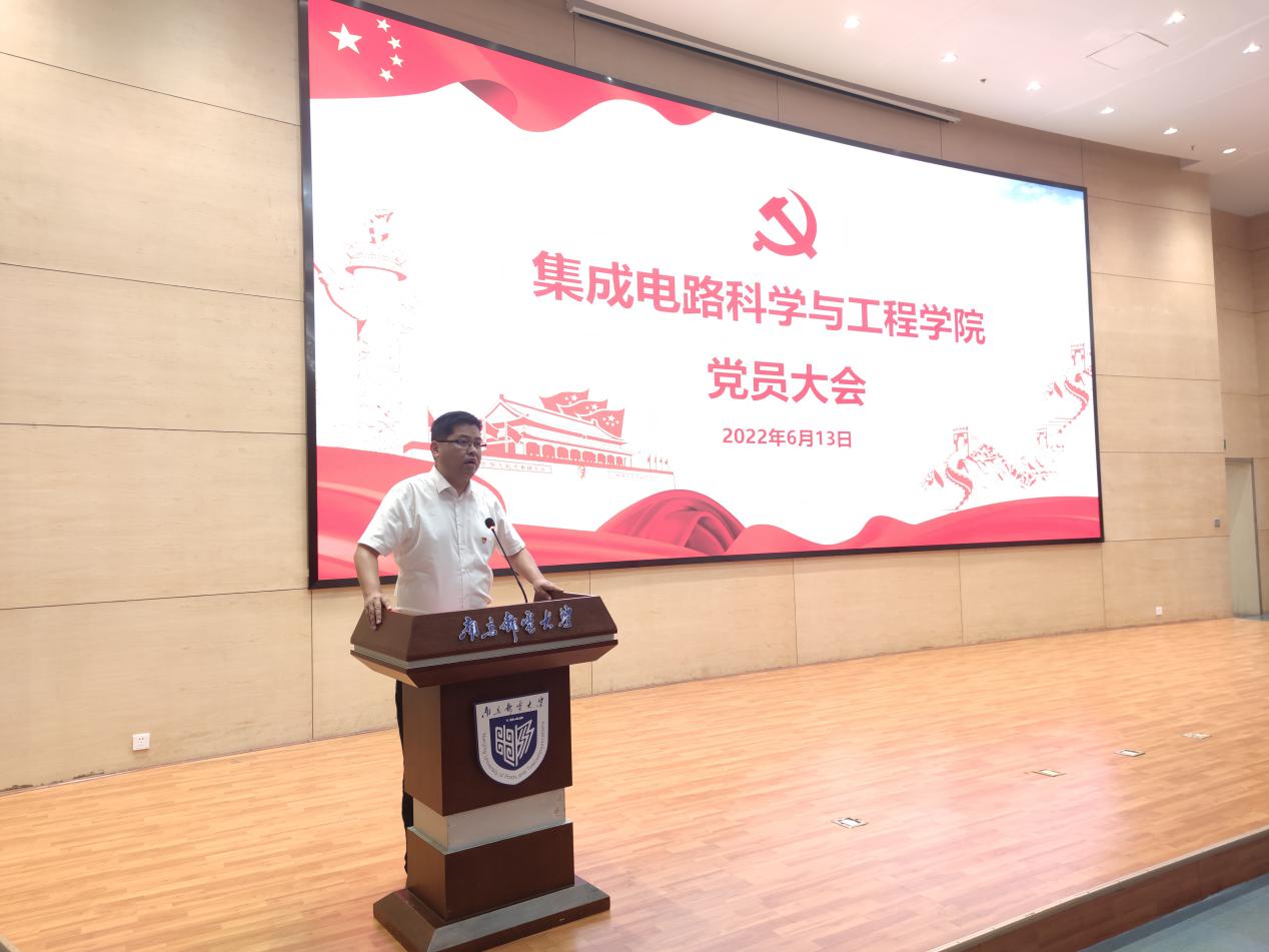 根据《中国共产党章程》、《中国共产党基层组织选举工作暂行条例》等规定和学校党委要求,集成电路科学与工程太阳城app 于2022年6月13日下午在仙林校区图书馆四楼报告厅召开全体党员大会,本次大会由太阳城app 党委书记高翔主持,太阳城app 79名师生党员出席了本次会议。