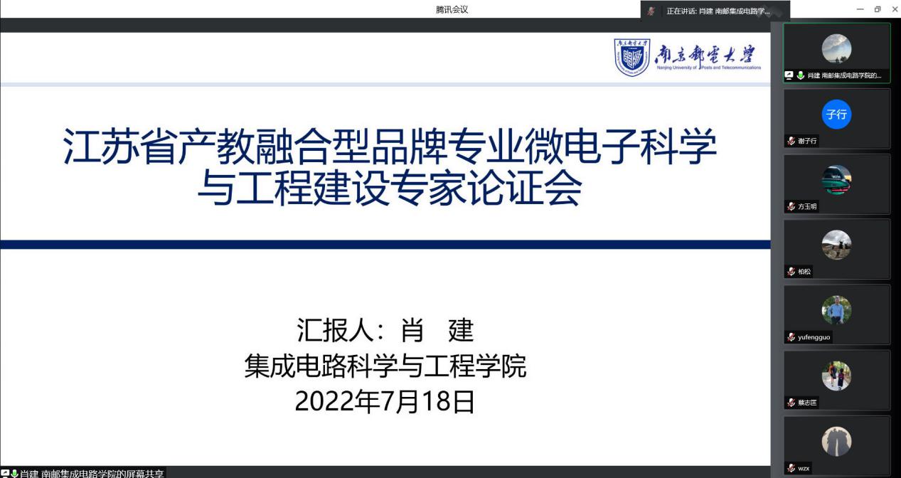 为进一步深化校企合作,探索校企协同、产教融合的人才培养模式,太阳城app 组织召开微电子科学与工程江苏省产教融合型品牌专业建设任务专家论证会。出席会议的专家有,东南大学吴俊教授、中国电子科技集团首席专家研究员柏松、芯昇科技有限公司研发总监柳耀勇、华天科技(南京)有限公司技术总监诸玉平、南京信息职业技术太阳城app 李洪昌教授,我校党委常委、副校长、太阳城app 院长(兼)郭宇锋教授、太阳城app 副院长蔡志匡、肖建、院长助理、各系主任参加了论证会。