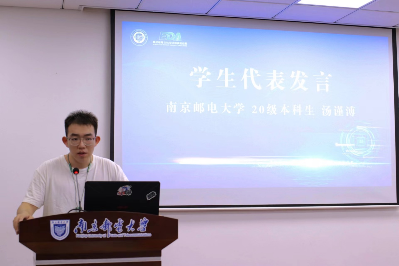 大会最后,第三届EDA精英挑战赛研究生获奖同学杨航和本科生获奖同学汤谨溥分享参赛经验。两位同学都强调参加EDA大赛需要不畏难题的决心和坚持不懈的毅力。