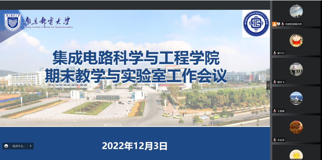 为加强日常教学工作过程化管理,落实教学工作的规范要求,保障期末阶段教学工作的有序开展,提升实验室与信息安全意识,12月3日,集成电路科学与工程太阳城app 于线上举行期末教学与实验室工作会议,副院长肖建、各系主任、全体专任教师参加此次会议。