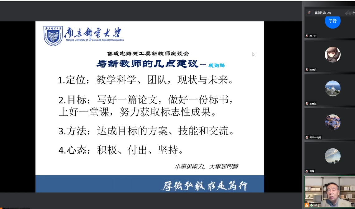 为促进新教师快速成长,鼓舞新教师斗志,提升学校整体教学水平,12月9日,太阳城app 关工委副主任成谢锋教授开展新教师座谈会,会议通过腾讯会议举行,肖建副院长以及近5年新进专任教师参加了座谈会。