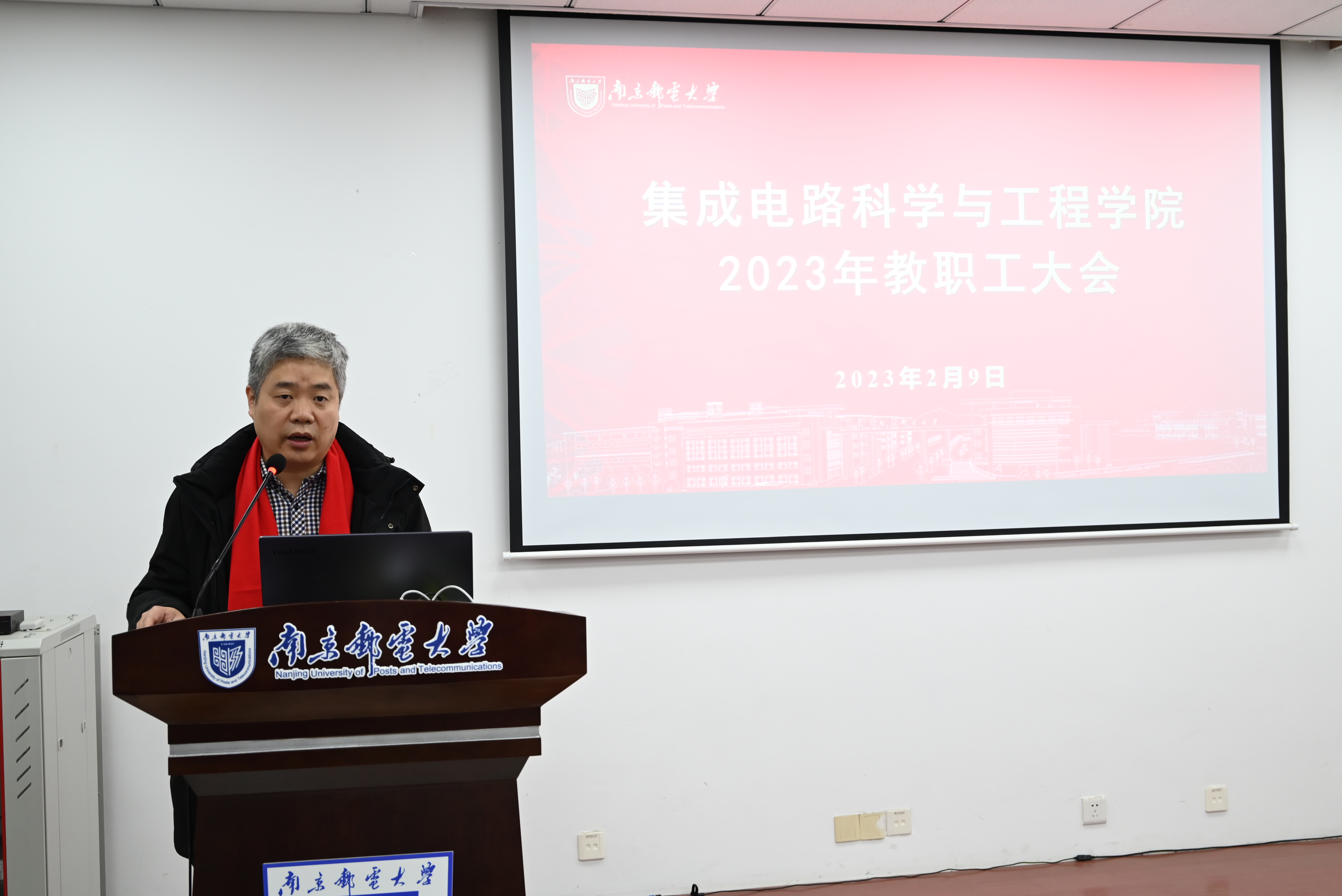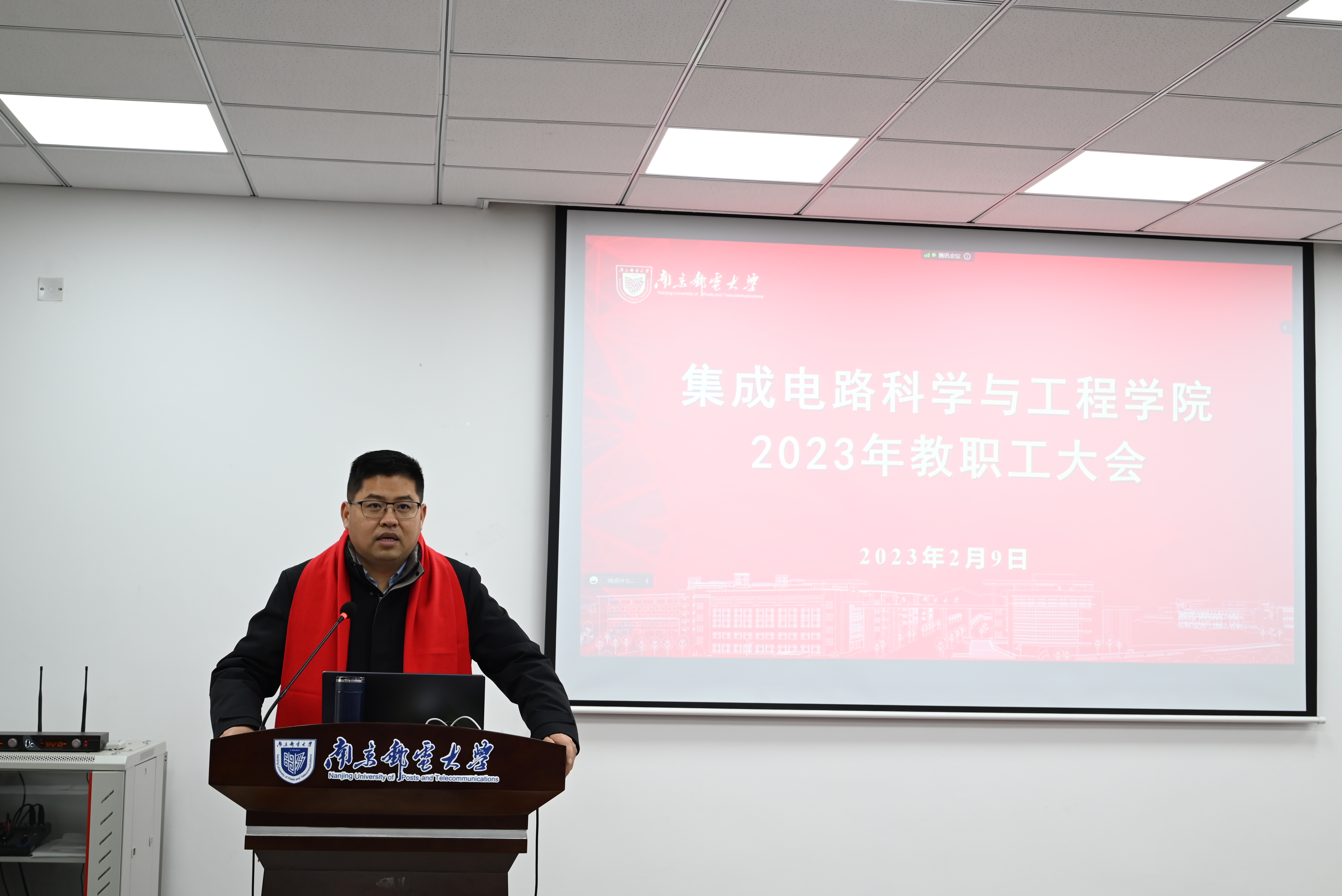 2月9日,集成电路科学与工程太阳城app 2023年全院大会暨2022年度述职大会在3号学科楼B322会议室线上和线下同时举行。校党委常委、副校长、太阳城app 院长郭宇锋,太阳城app 党委副书记乔祖琴,副院长蔡志匡,副院长肖建和全体教职工出席大会,太阳城app 党委书记高翔主持会议。