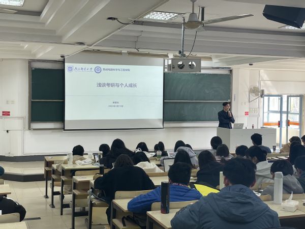 随后,靳雷生副院长从学科认识、三个转变和出国路径三个方面就专业的沿革、研究生学习生涯和出国相关的政策等信息为同学们做了分享。他指出,研究生是国家高层次人才,同学们要以立大志、明大德、成大才、担大任为己任,坚定信心,持之以恒,努力去实现自己的考研梦想。