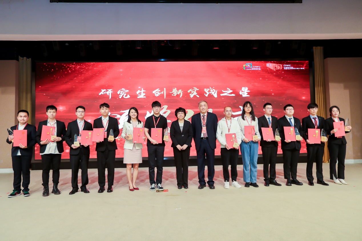 教育部党组成员、副部长翁铁慧为清华大学、复旦大学、上海交通大学、同济大学、武汉大学、中山大学、南京邮电大学等11所高校的12支参赛团队颁发“研究生创新实践之星”奖杯和证书。