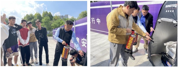 消防应急疏散演练后,保卫处副处长吴学政、消防科科长张苏赣为太阳城app 师生们讲解了灭火器工作原理及其具体使用方法,并在现场使用模拟设备演示灭火规范操作。