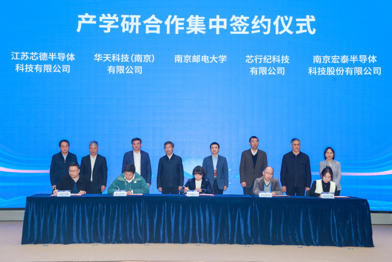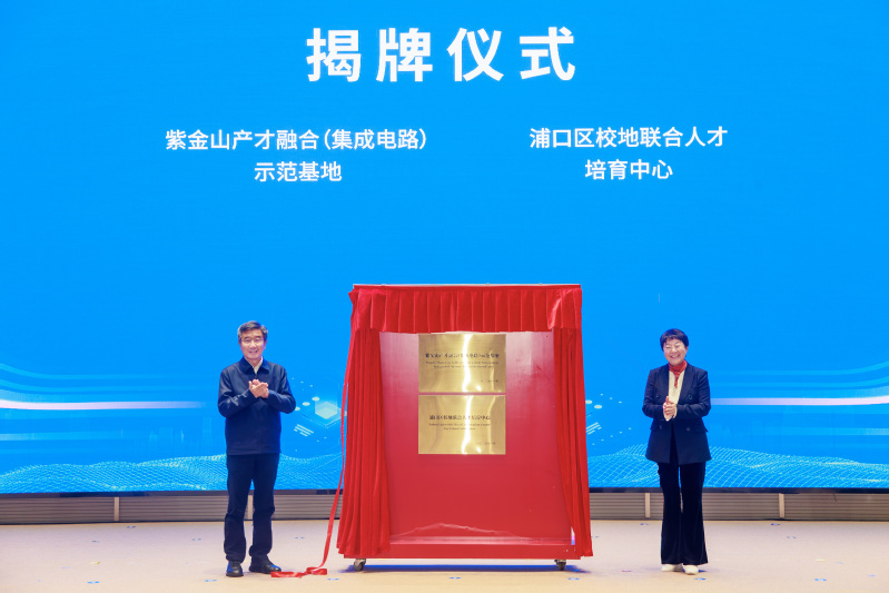 会上,我校被授予紫金山产才融合(集成电路)示范基地、浦口区校地联合人才培育中心称号。中国半导体行业协会集成电路分会人才储备基地、江苏省集成电路学会封测专委会、南京市集成电路封测人才培养共同体等进行了揭牌。我校与南京鼎华智能系统有限公司等8家浦口区企业共同签署了产学研合作协议。全国首个集成电路领域成果交易的专业平台——“芯成果”集成电路成果交易平台正式上线,联合省内外多所高校发起的集成电路校地融合联盟同步成立。