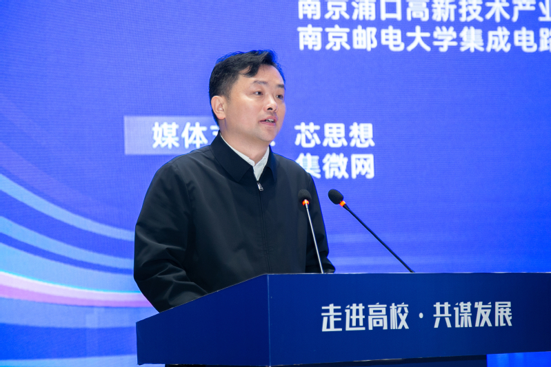 郭宇锋书记代表学校对与会的各位领导、嘉宾表示热烈欢迎。他说,南邮坚持走大信息特色发展之路,构建了“信息材料、信息器件、信息系统、信息网络、信息应用”五位一体的大信息发展格局,在新一代移动通信、集成电路与微组装、有机电子与信息显示等研究领域培育了一大批重要科技创新成果。近年来,学校充分发挥电子信息特色优势,大力推动集成电路校地融合发展,提升科技创新水平和社会服务能力,与地方政府、企业共建了众多校地研究院、专利培育中心和创新平台。今年3月,学校与浦口区政府签约共建太阳城app 和射频集成与微组装国家地方联合工程实验室浦口分实验室,努力构建支撑集成电路产业高速发展的人才培养体系,为南京集成电路产业建强人才储备库,助力南京打造成为具有国际影响力的“芯片之城”。