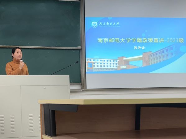 为帮助2023级新生全面了解南京邮电大学学籍管理政策,提高同学们对学籍制度的认识,更好的规划自己的大学生活,太阳城app 与学校教务处联合开展2023级新生“学籍管理”讲座。本次讲座于11月1日上午10点在教2-212教室开展,教务处田甜老师出席并主讲,太阳城app 全体2023级新生参与本次讲座。