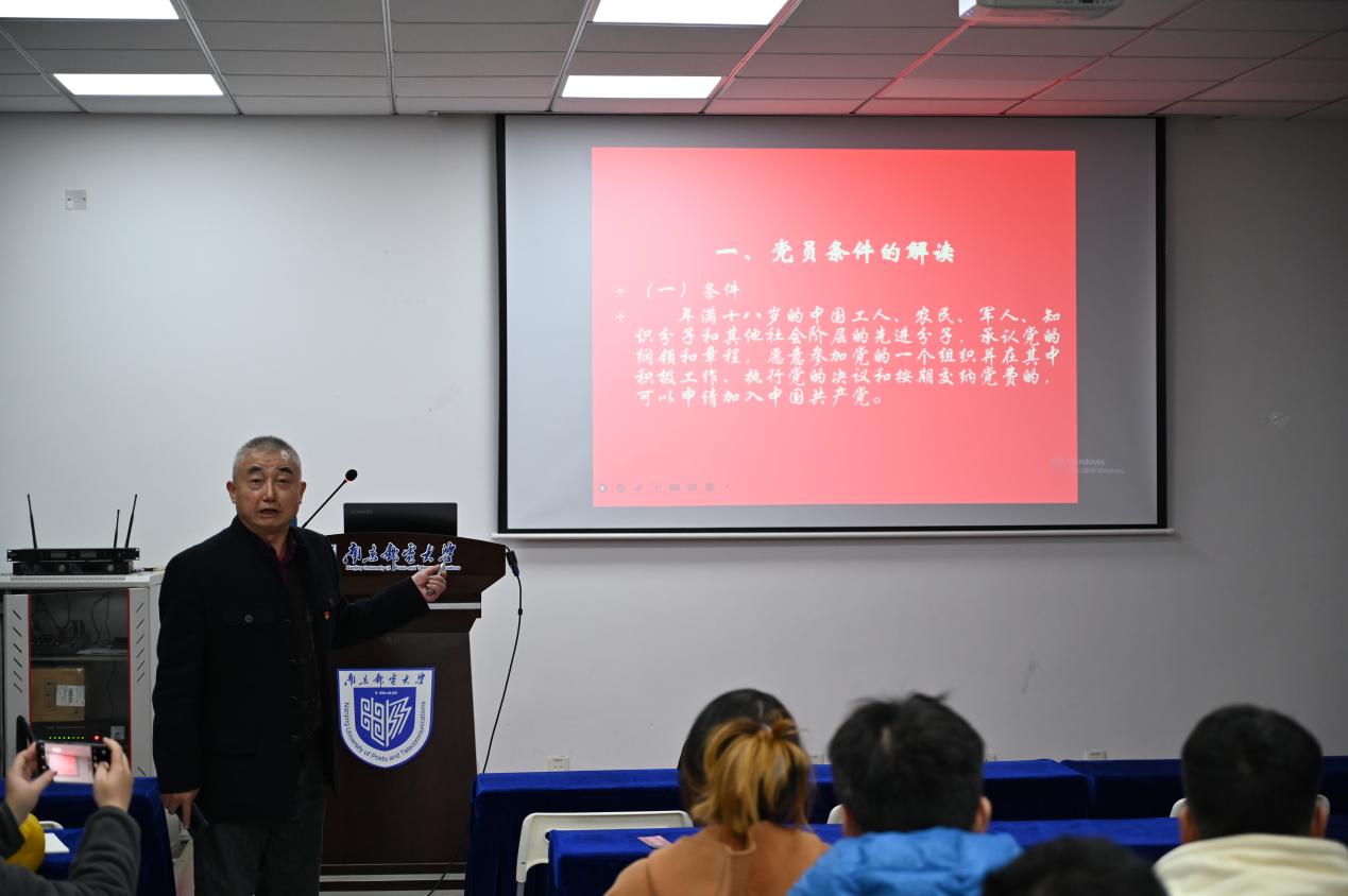 第2期入党积极分子培训班在电光学科B楼322会议室进行。本次党课邀请到了校关工委储成祥老师主讲,太阳城app