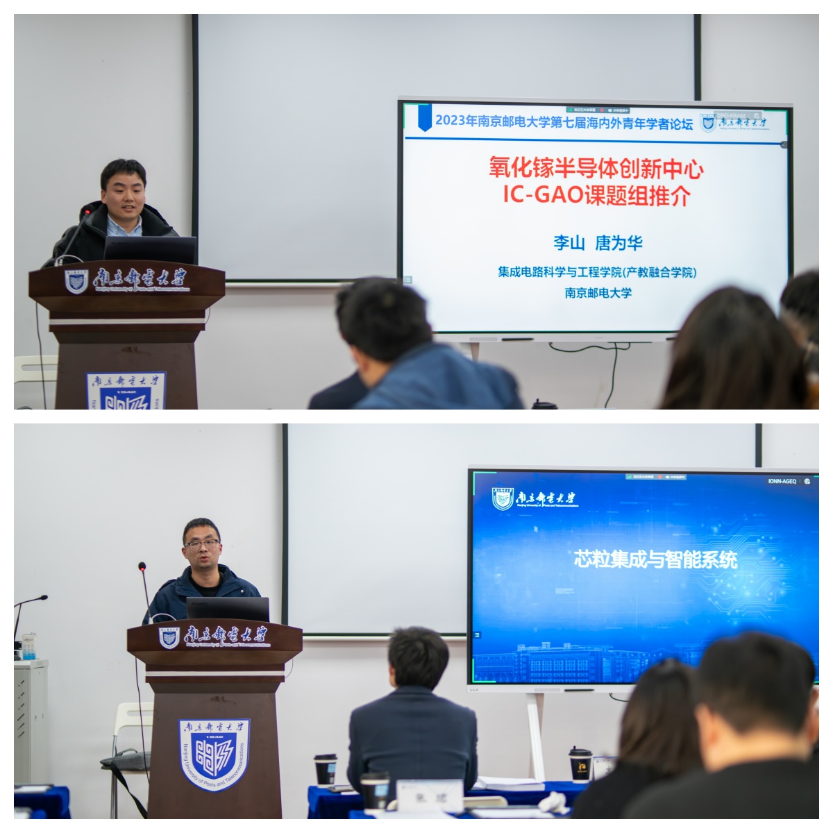 李巍、张珺、李山、谢祖帅4位老师作团队推介。他们分别代表李巍教授团队“智能微纳机电系统技术与应用”、郭宇锋教授团队“先进功率器件与集成”、唐为华教授团队“氧化镓半导体创新中心(IC-GAO)”以及“集成电路应用技术研究院”团队介绍、展示了各团队的研究特色和突出成果,让参会青年学者对太阳城app 的材料、器件、电路、系统各个研究方向有了更加深刻清晰的了解。