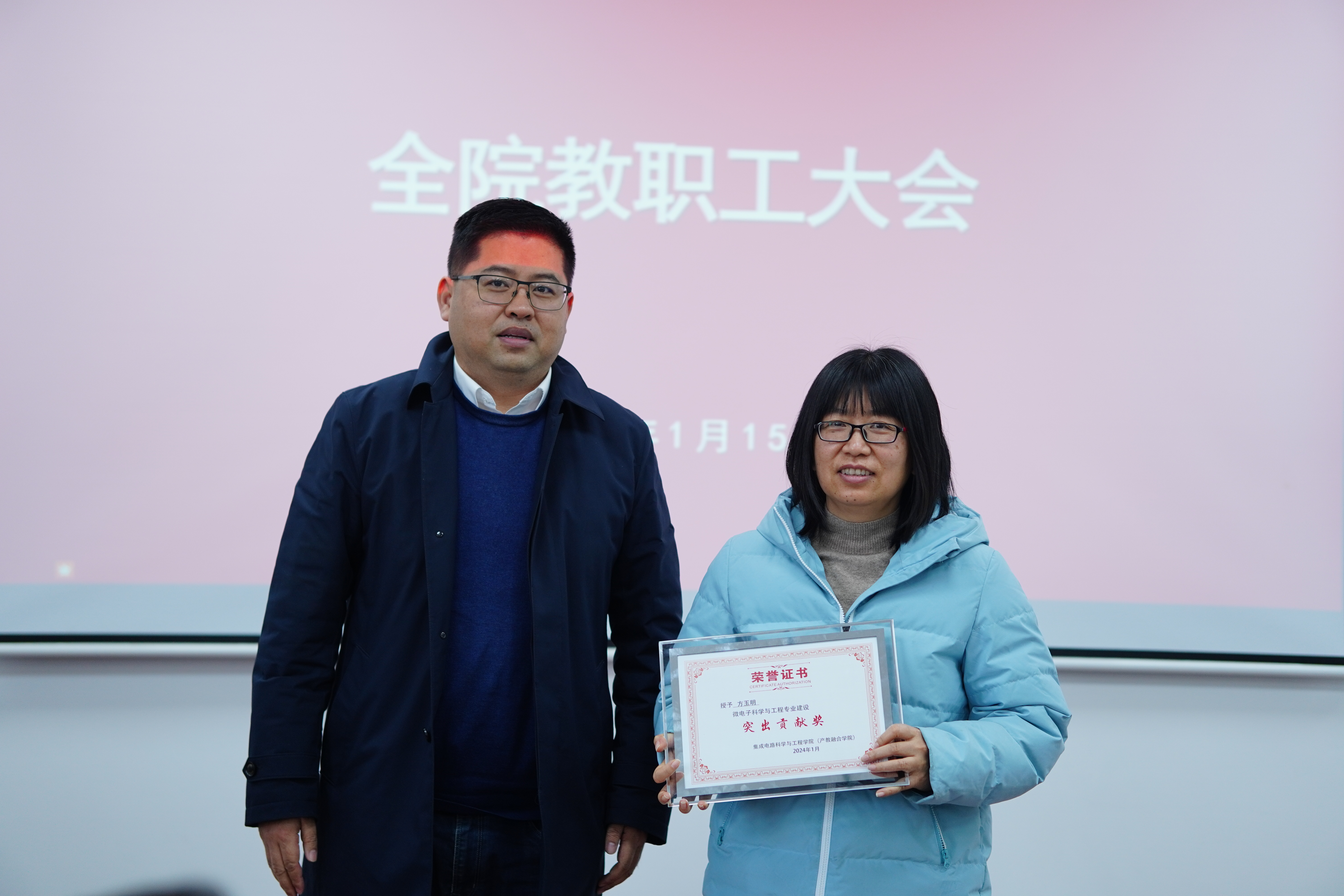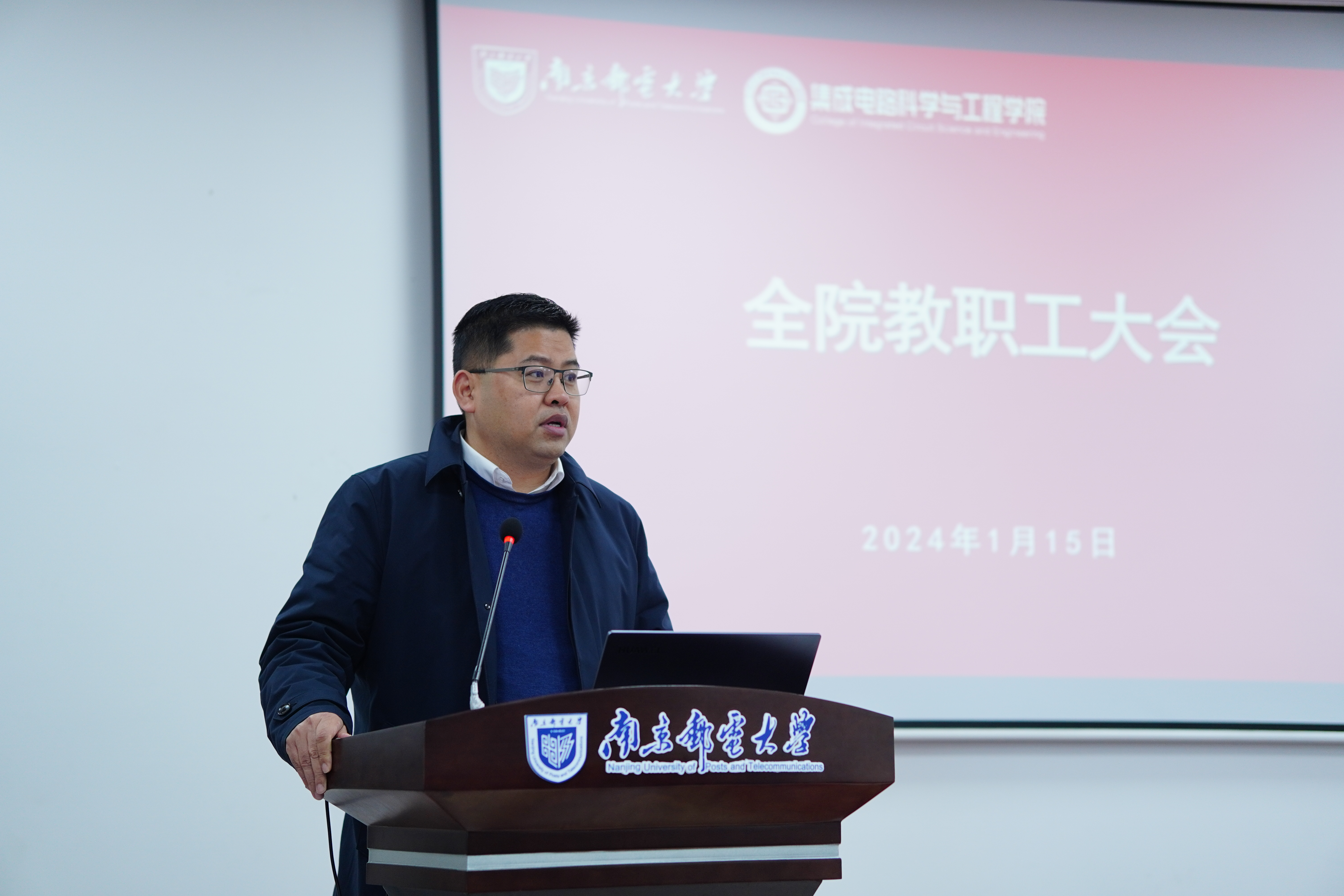 1月15日,太阳城app 2024年全院大会暨2023年度全院教师述职大会在仙林校区电光学科楼B322会议室顺利召开。院长蔡志匡,党委副书记、副院长乔祖琴,副院长肖建、靳雷生和全体教职工出席本次大会,党委书记高翔主持会议。