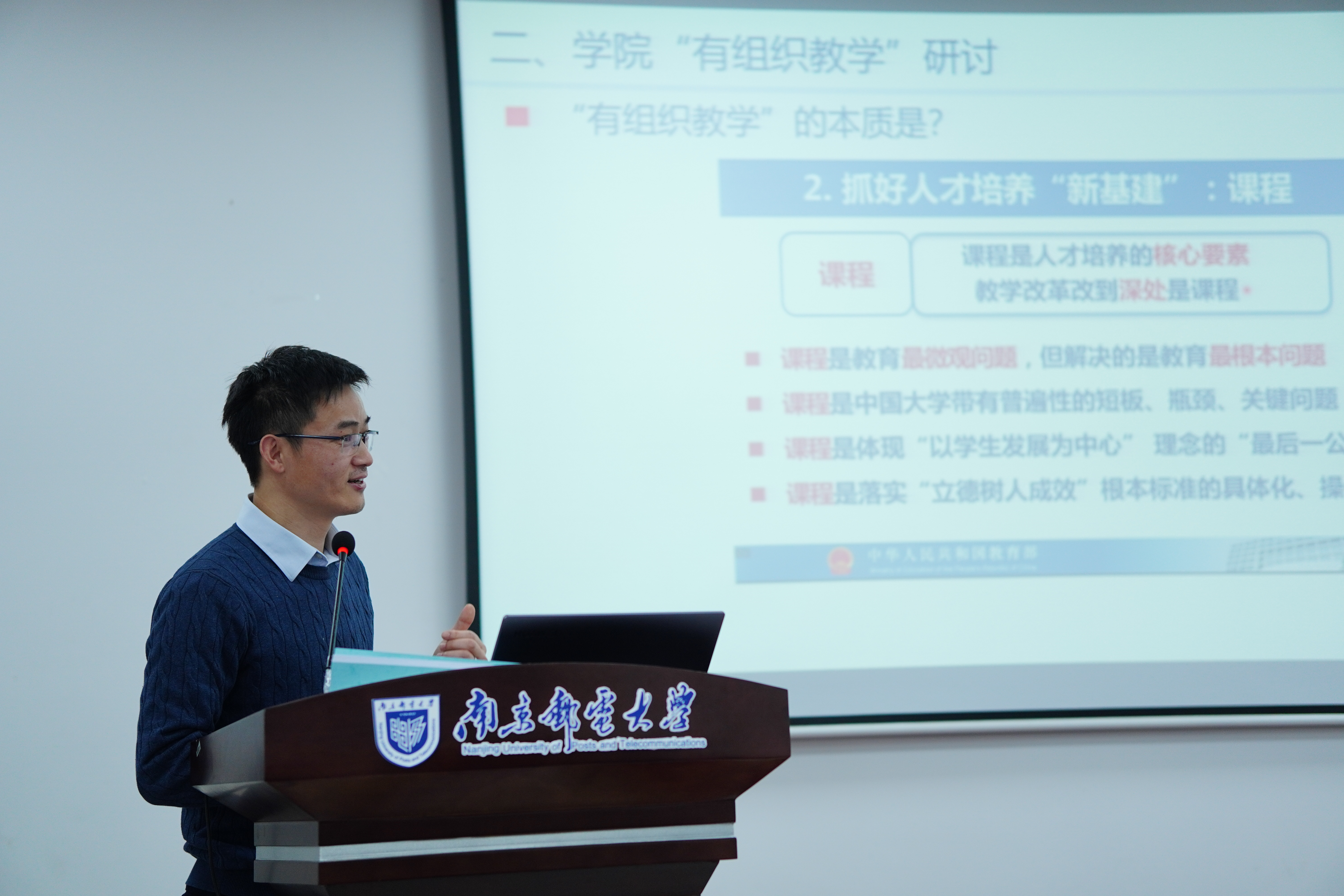 靳雷生副院长围绕自评报告指标与教师关系、太阳城app 未来开展“有组织”教学两方面进行了汇报。他谈到新一轮本科教育教学审核评估以及自评报告撰写的重要意义,说明了各指标点与教师之间的关系,分析了目前自评报告反映的一些问题。接着,靳雷生副院长提到未来太阳城app 要开展有组织教学,并就有组织教学的本质含义,如何建立有组织教学,以及有组织教学组成与职能、太阳城app 资源支持等方面进行了解读。随后全院教师对自评报告以及“有组织教学”相关进行研讨。