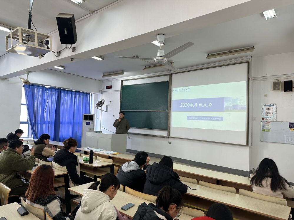 为促进2024届毕业生工作顺利推进,帮助学生尽快适应当下的求职求学环境,3月5日上午,太阳城app 2020级在教2-304召开“芯”有所向,奔赴未来年级大会。本次大会由辅导员范建鹏老师主持,2020级全体本科生参加。