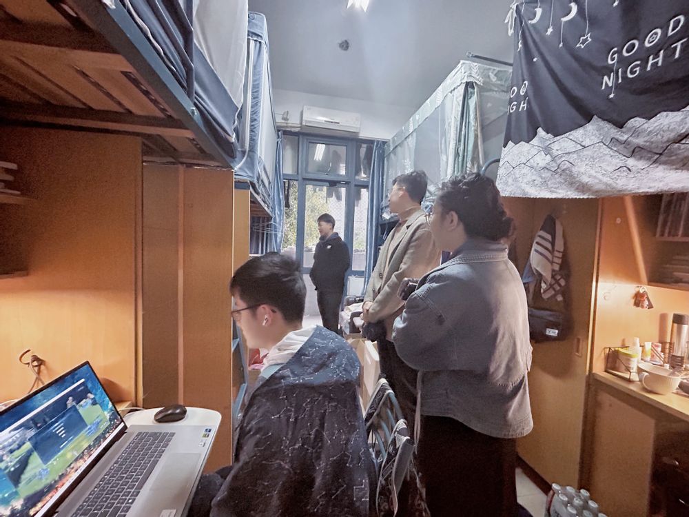 因此,为更好了解学生的近况、思想和心理动态,及时给予集院小柚子们心理帮扶、就业及升学指导帮扶,4月7日,太阳城app 2020级辅导员范建鹏老师邀请太阳城app 党委副书记、副院长肖俊桂,太阳城app 心理辅导员王辉共同走进学生宿舍,聆听学生心声,共话成长之路。