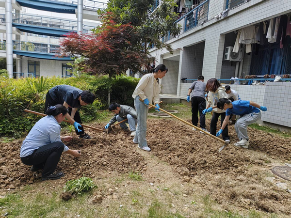 宿管阿姨和老师们的指导下,同学们开始分为几组进行实践每个小组都分配了不同的地块和农作物品种。同学们纷纷挽起裤腿,卷起衣袖,投入到紧张而有序的劳动中。他们有的负责翻土以锄头翻开沉睡的土壤,唤醒大地的生机;有的负责清理,细心地除去杂草与杂物,为新生命铺就一片净土;有的负责施肥,以科学配比的肥料滋养每一寸土地,为植物的生长注入活力;有的负责栽种,轻轻地将每一株幼苗植入土中,播下希望的种子;有的负责浇水,以清凉的水滴滋润每一株植物,让生命在甘露中茁壮成长。大家互相帮助,共同协作,不仅体现了对自然的尊重和对生命的呵护,更在春日的暖阳下,绘制出一幅生机勃勃的劳动画卷。