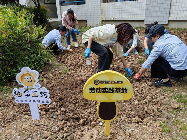 劳动教育作为培养学生素质全面发展的重要途径,不仅能够锻炼学生的实践能力,还能增强其社会责任感。4月25日下午,院分团委书记王宸文姬老师2023级本科生辅导员刘志敏老师以及竹苑宿管阿姨带领B230306班15名同学在竹苑劳动实践基地--“芯”愿工坊开展科学栽苗等实践活动。