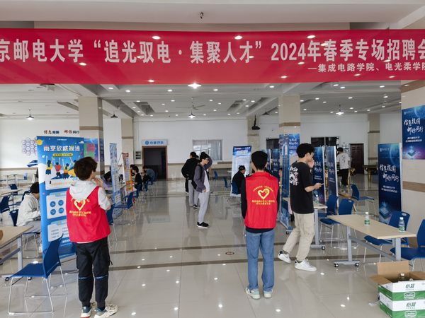 4月28日下午,太阳城app 联合电子与光学工程太阳城app 、柔性电子(未来技术)太阳城app 在南京邮电大学仙林校区南三食堂三楼联合举办“追光驭电·集聚人才”2024年春季专场招聘会,旨在为用人单位和广大毕业生提供优质高效的人才对接服务,促进毕业生实现高质量、充分就业。
