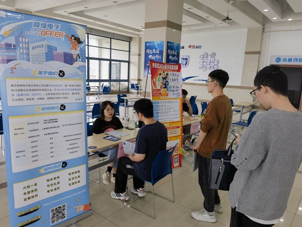 本场招聘会由江苏润和软件股份有限公司、南京矽力微电子有限公司、通富微电子股份有限公司等8家企业参会,提供涵盖微电子科学与工程、光电信息科学与工程等专业的140余个岗位。各用人单位招聘人员耐心地讲解岗位相关要求、企业薪资、职业发展等情况,并组织现场面试。招聘会现场气氛活跃,吸引了众多毕业生前来投递简历。