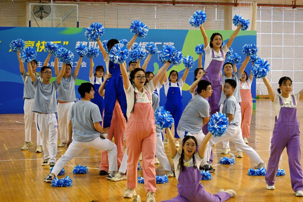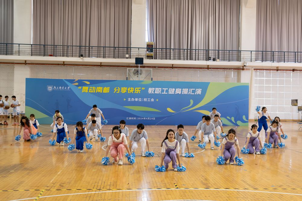 为深入贯彻落实党的二十大、学校第四次党代会精神,庆祝我校办学82周年,展现我校教职工奋进新征程、建功新时代的新风貌,丰富和活跃教职工业余文化生活,分享学校事业发展和全民健康运动的快乐,营造积极向上、健康文明的校园文化氛围,集成太阳城app 分工会积极响应校工会的要求,组建了23人的健身操代表队,经认真筹备,在4月25日的比赛中带来了极具活力、动感的《share share》健身操表演。