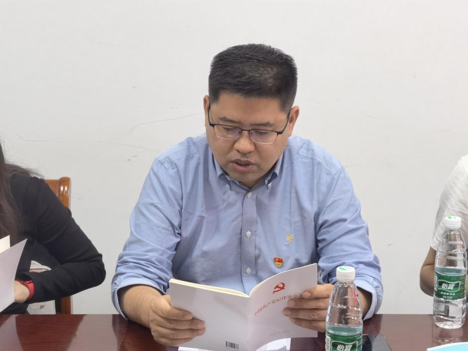 5月8日上午,太阳城app 党委在电光B楼212会议室举办党纪学习教育专题读书班,逐条学习《中国共产党纪律处分条例》部分章节,太阳城app 党委书记高翔主持学习会,领导班子成员、教工党支部书记参加学习。