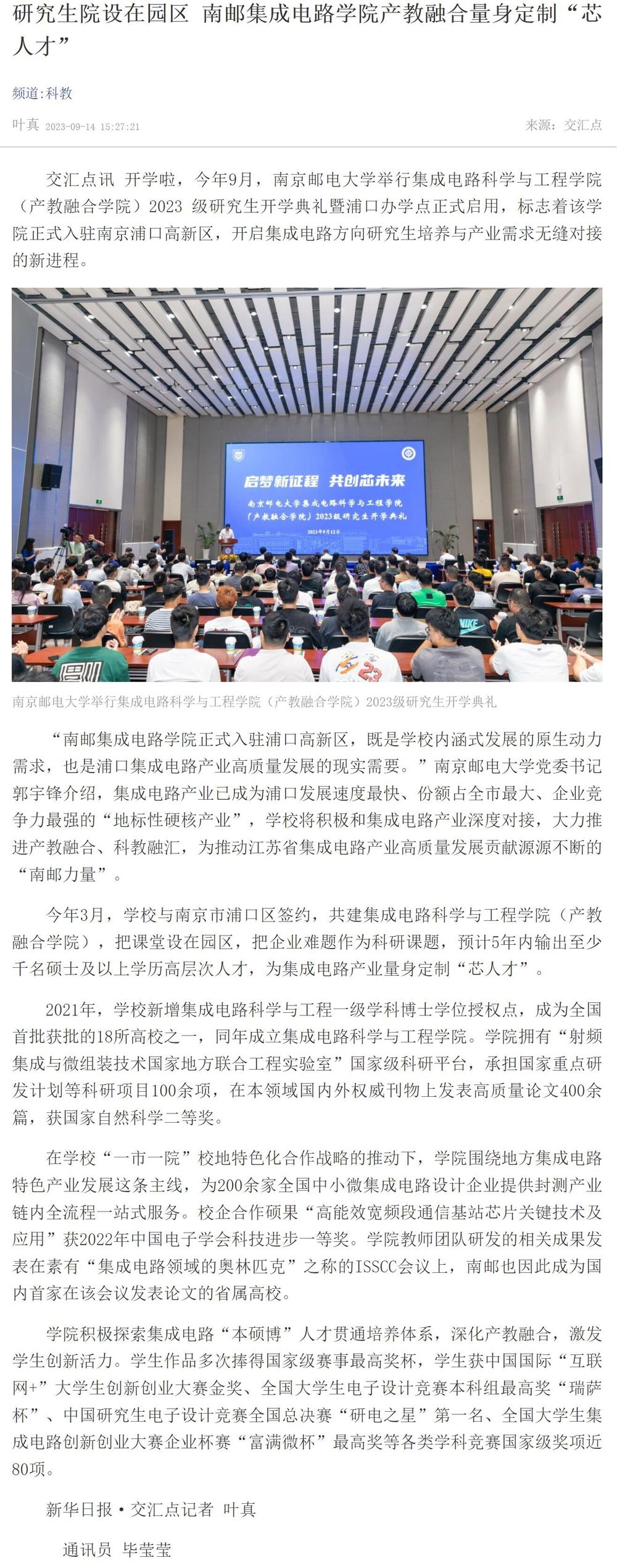 【新华日报客户端】南邮集成电路太阳城app 产教融合量身定制“芯人才”