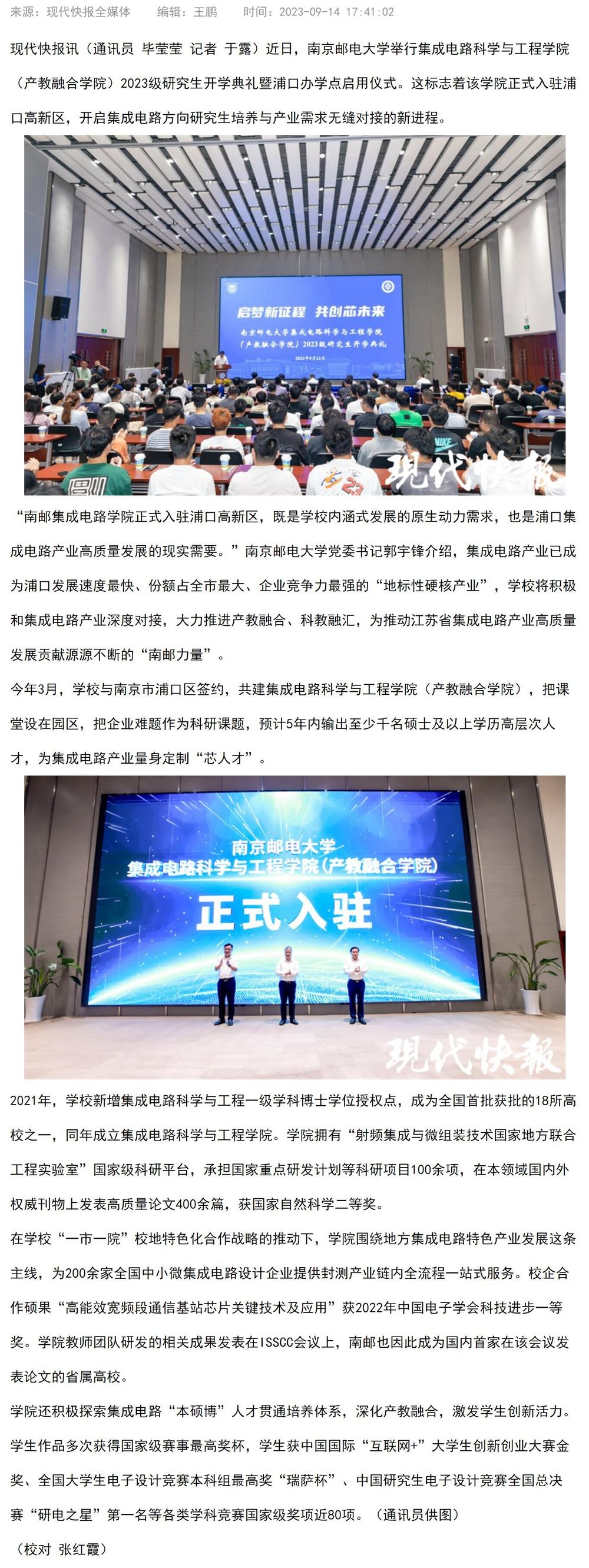 【现代快报全媒体】量身定制“芯人才”!南邮集成电路太阳城app 正式入驻浦口