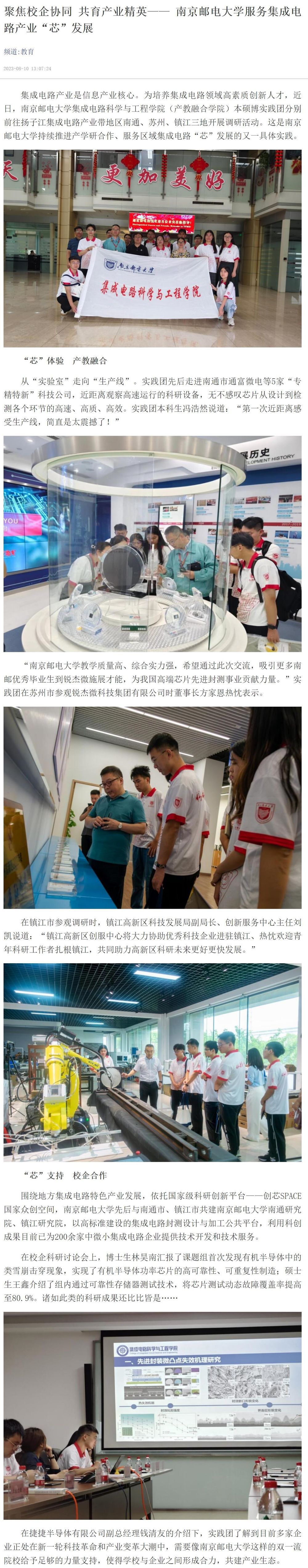 【新华日报客户端】聚焦校企协同 共育产业精英—— 南京邮电大学服务集成电路产业“芯”发展