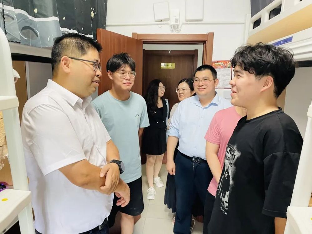 为全面把握暑期留校学生动态,落实落细暑期留校学生安全管理工作,8月2日下午,太阳城app 教师代表走访暑期留校学生宿舍,实地了解同学们的学习和生活情况。