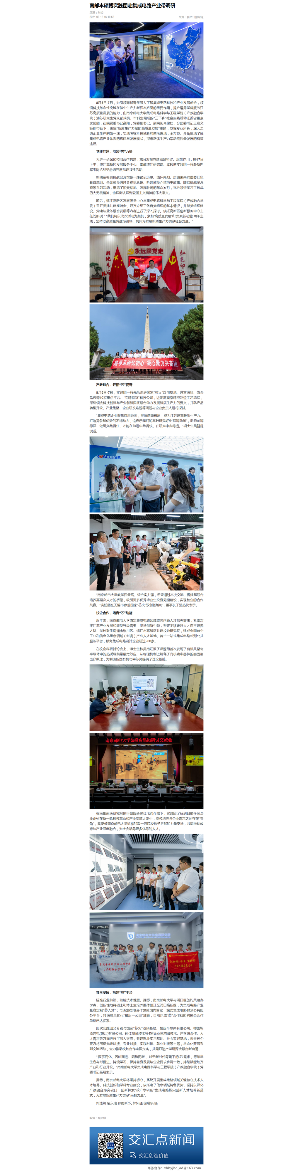【新华日报交汇点】南邮本硕博实践团赴集成电路产业带调研