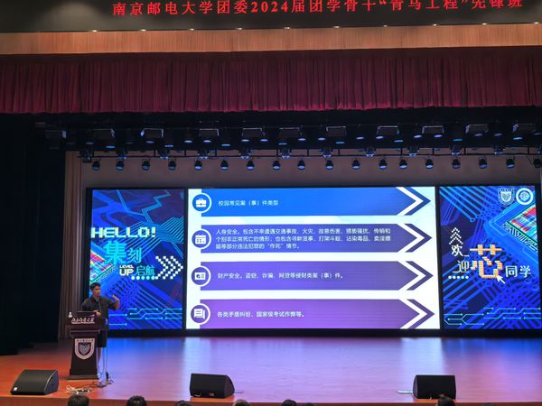 为增强太阳城app 2024级新生的安全防范意识,提高自我保护能力,切实落实和强化安全教育理念。9月8日下午,太阳城app 在安恒青春剧场组织开展2024级新生入学教育之大学生安全教育讲座,此次讲座特邀校保卫处彭建森老师主讲,2024级辅导员范建鹏主持,太阳城app 所有2024级本科新生参加。