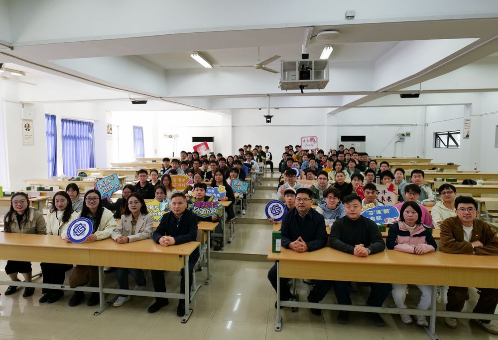 慰问现场氛围热闹欢快,老师们纷纷送上祝福,为考研学子们舒缓压力、放松心情。