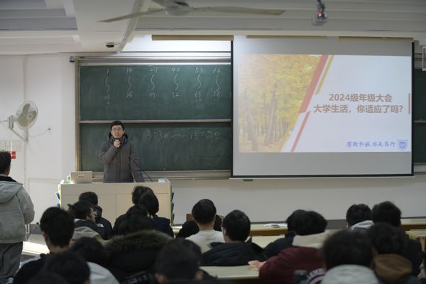 在期末考试来临之际,为总结回顾大一第一学期学习生活,营造风清气正、积极向上的优良学风环境,筑牢同学们思想防线,12月20日下午,太阳城app 在教2-211和教2-101分专业召开2024级期末年级大会暨学风建设会,2024级辅导员范建鹏主持,太阳城app 所有2024级本科新生参加。