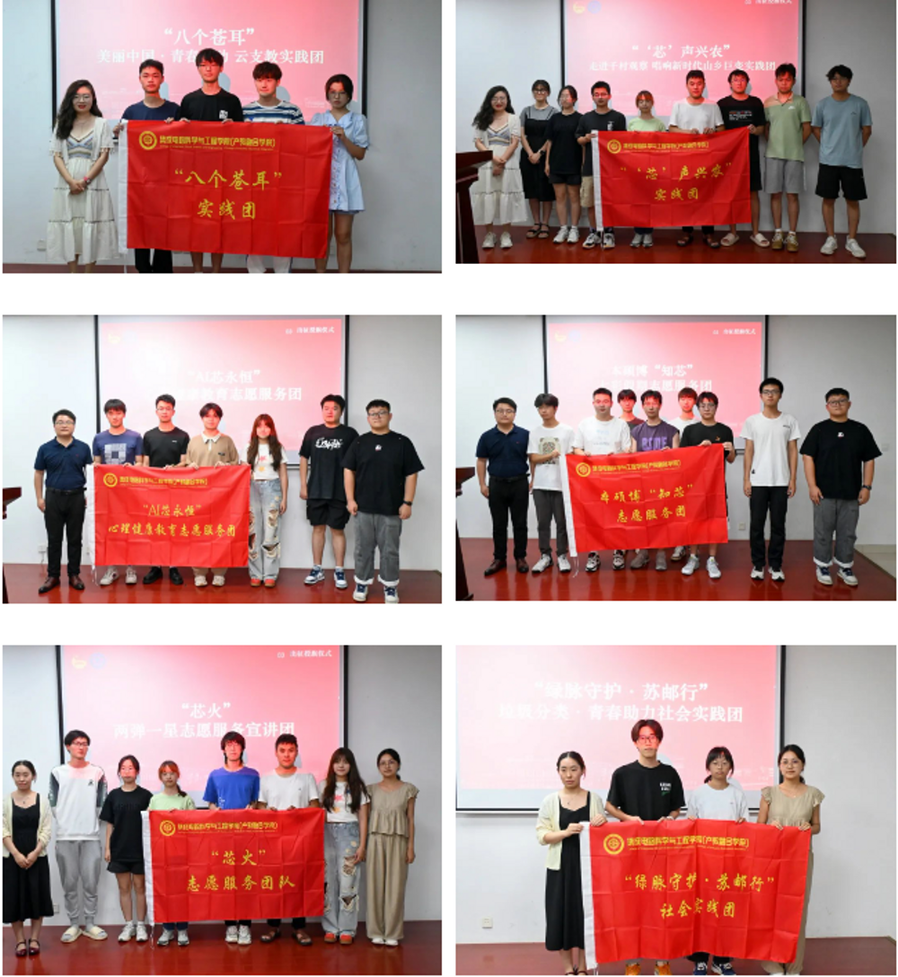 肖书记与四位老师共同为太阳城app 重点立项8支团队授旗。各团队接过旗帜,是方向、是责任、是力量。他们已整装待发,将以饱满的热情投入实践。