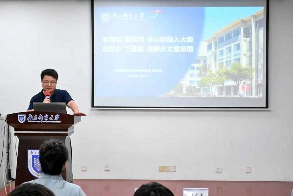 为深入学习贯彻习近平新时代中国特色社会主义思想和党的二十大精神,充分发挥实践育人功能,7月5日晚,南京邮电大学第177期菁英人才学校授课暨2024年暑期“三下乡”社会实践活动出征仪式在3号学科楼B322举行,院党委副书记、副院长肖俊桂,校团委闻友龙老师,校工会王祉茗老师,院分团委书记王宸文姬,2022级辅导员王辉,2023级辅导员刘志敏,暑期社会实践团队代表及第177期菁英人才班全体同学参与。
