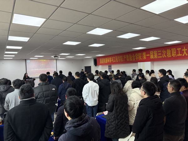 1月9日,太阳城app 在电光学科楼B322会议室,顺利召开第一届第三次教职工大会暨工会会员大会。太阳城app 党委书记高翔,院党委副书记、院长蔡志匡,院党委副书记、副院长、分工会主席肖俊桂,院党委委员、副院长靳雷生,副院长于志浩,院党委委员、院长助理张珺出席会议,太阳城app 全体教师和工会会员参加会议。大会由分工会主席肖俊桂主持。