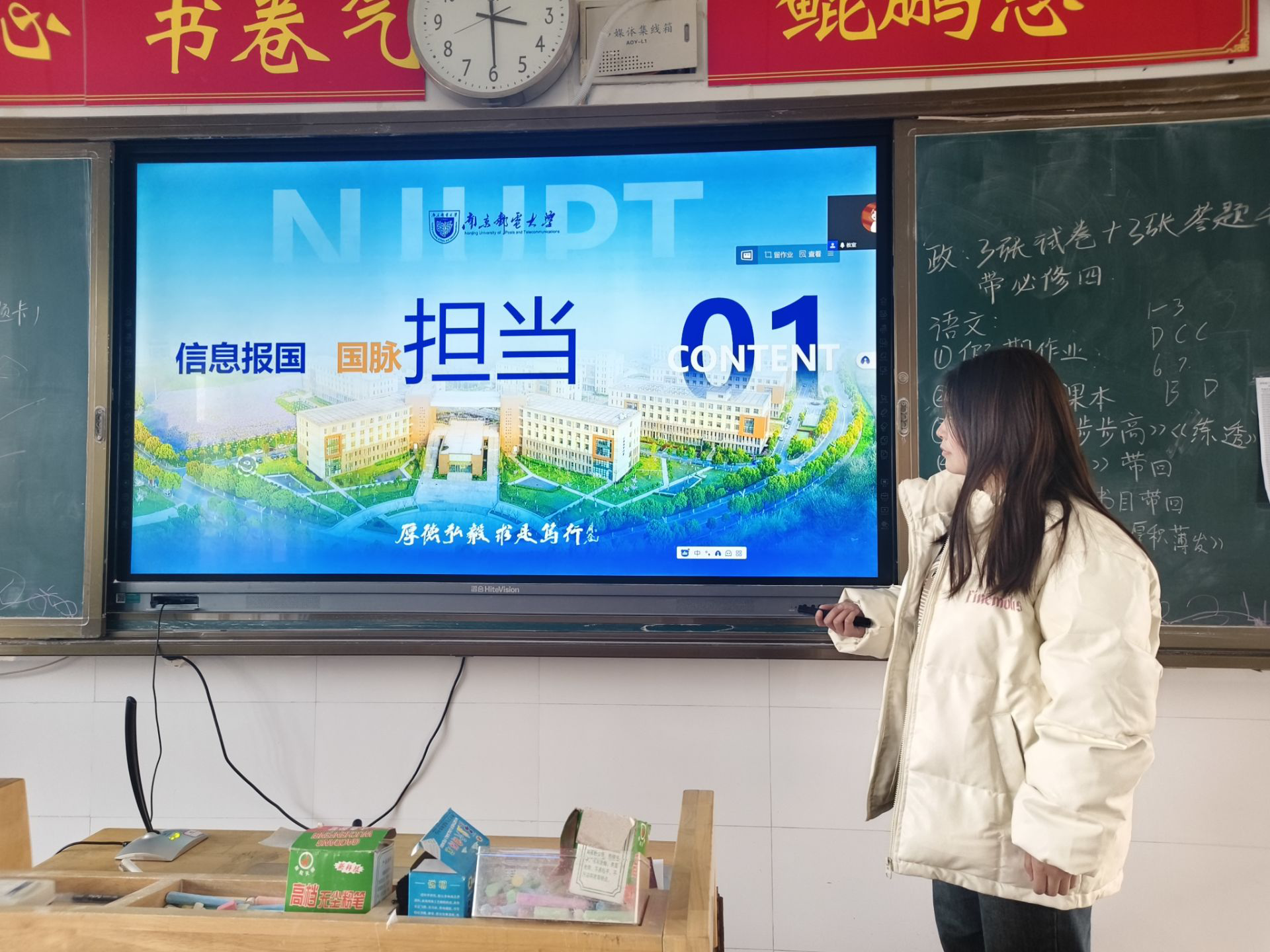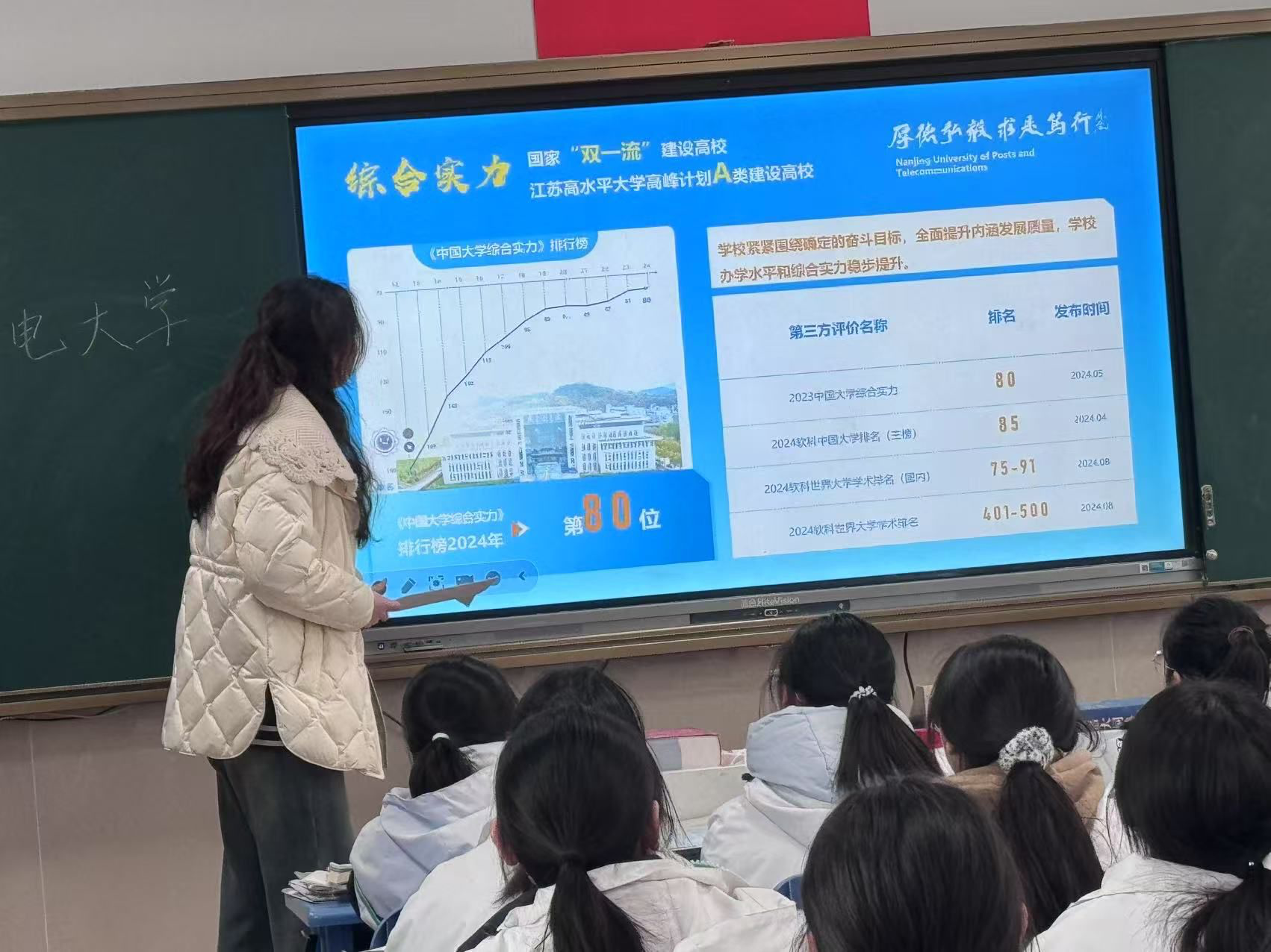 活动期间,团队成员走进高三重点班级,通过播放精心制作的宣传视频和PPT,展示了南邮的校园风貌和丰富的校园生活。成员们结合自身经历,介绍了学校的特色亮点,分享了在南邮的学习心得。