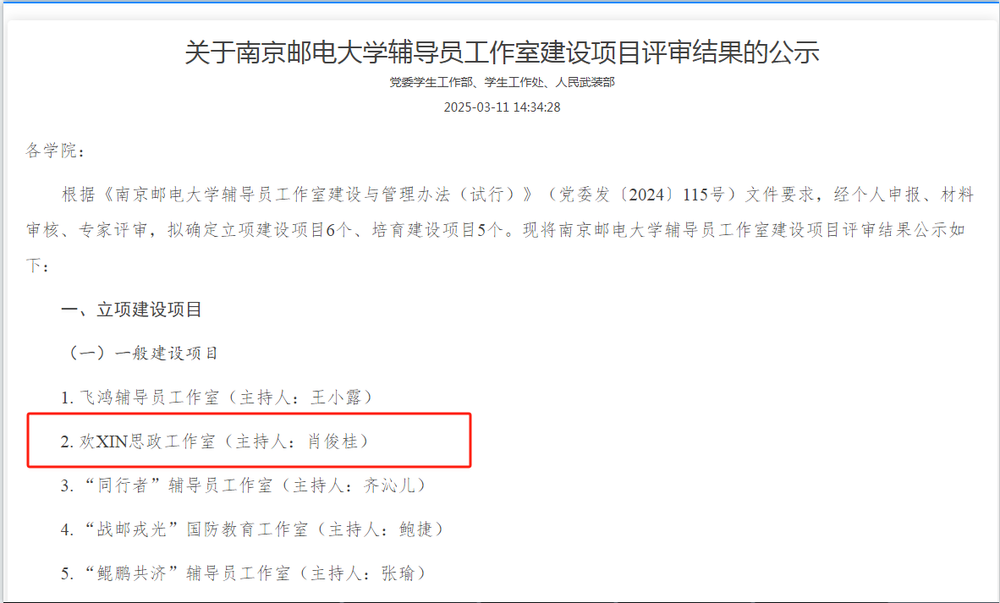 3月11日,南京邮电大学辅导员工作室建设项目评审结果正式公布,太阳城app 欢XIN思政工作室成功获批校级立项。这是太阳城app 辅导员队伍专业化、职业化建设的又一重要成果,标志着太阳城app 学生思想政治教育工作迈上了新台阶。