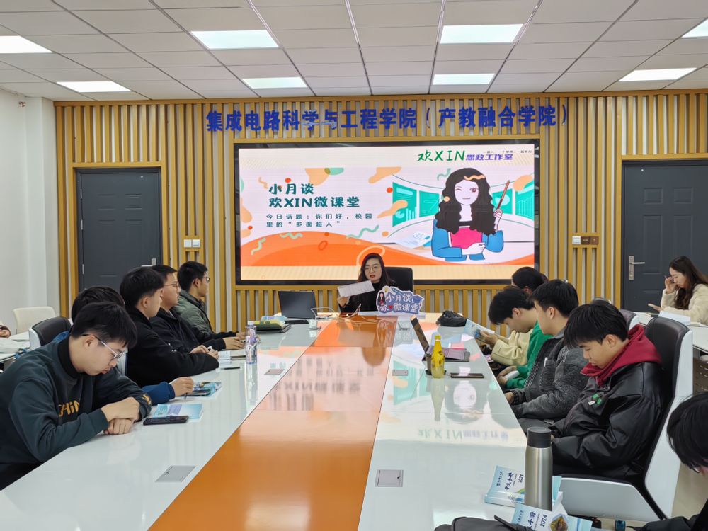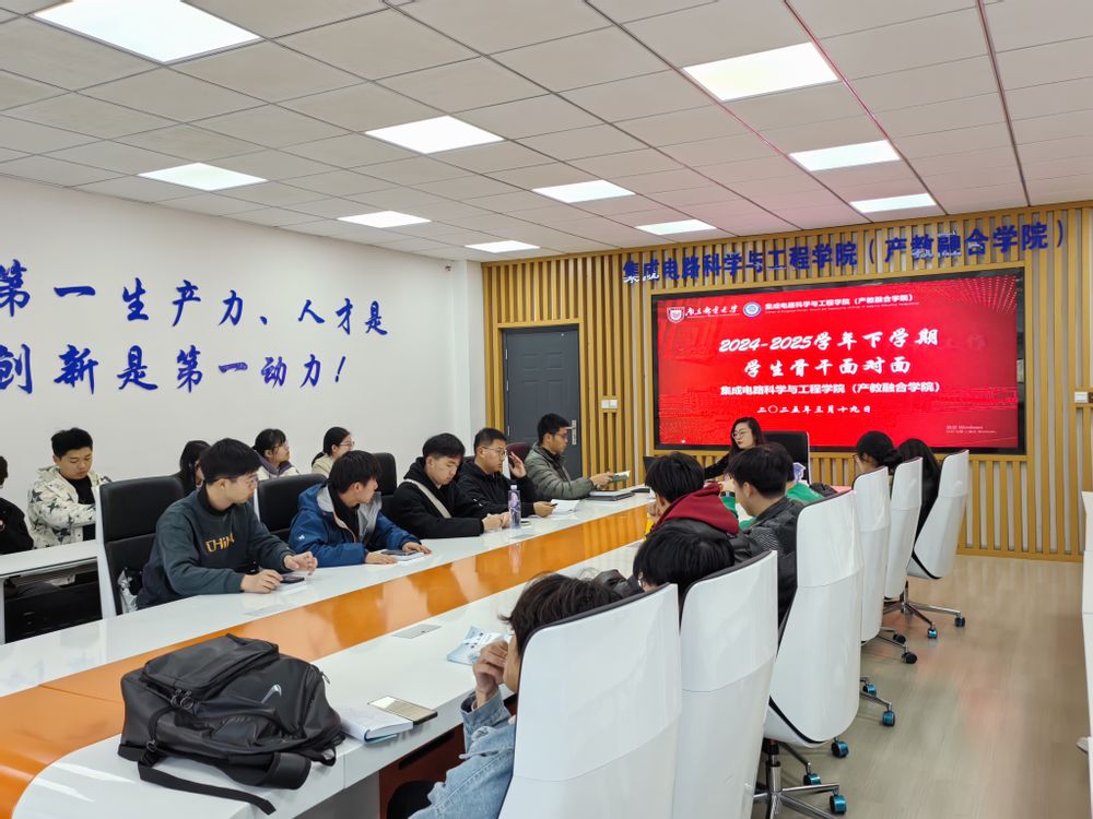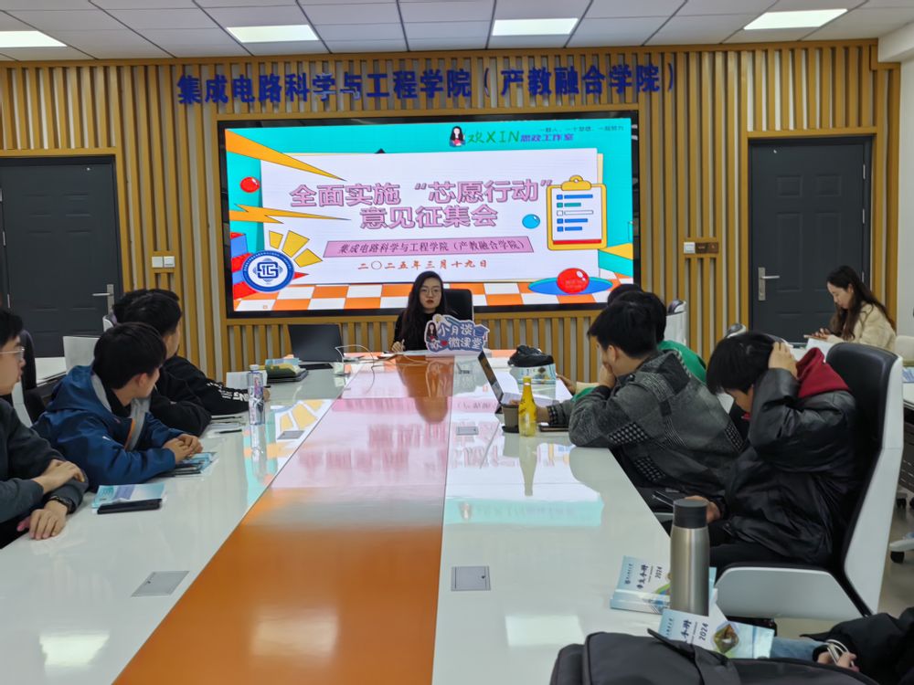 随后,肖书记详细介绍了“芯愿行动”的初衷和目标,该行动将秉承集成电路“三维集成”人才培养核心理念,通过“政产学研用”五位一体的育人模式,着眼自我管理能力等十项当代大学生核心素质能力,划分初级、中级、高级三个层级,提出一系列培养及实践措施。通过该行动,促进学生实现文化知识学习和思想品德修养的紧密结合,创新思维和社会实践的紧密结合,全面发展和个性发展的紧密结合,让学生真正实现在各自擅长的领域闪闪放光,走向卓越。她呼吁班长们广泛收集班级同学的意见和建议,为“芯愿行动”的顺利开展提供有力支持。