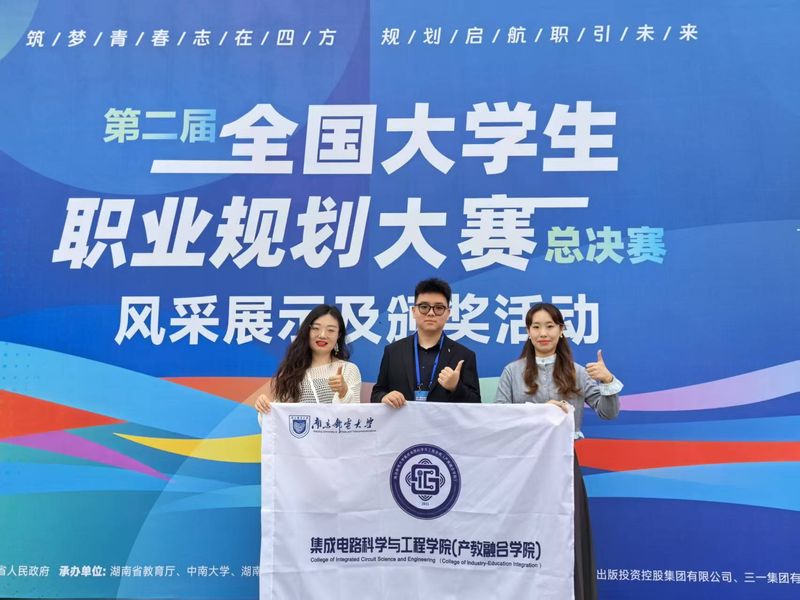 赵文博同学以《芯梦起航 成为一名芯片与器件设计工程师》为职业生涯主题,设计“科研攻关—产教融合—行业引领”职业路径。他在决赛中的答辩词引发广泛共鸣:“西方封锁什么,我们就要学习什么”——这就是南邮学子对“卡脖子”的有力回应,也是南邮将家国情怀贯穿人才培养的生动注脚。
