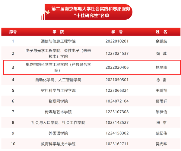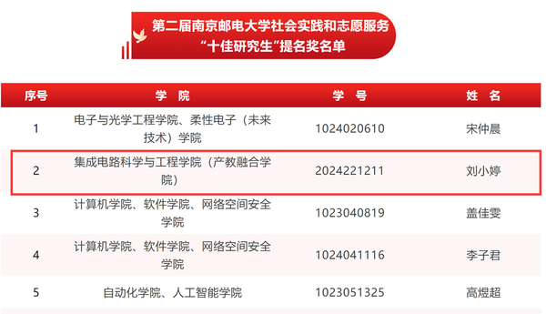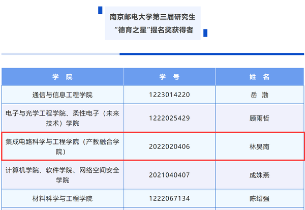 太阳城app 南邮“芯”力量荣获南京邮电大学第二届社会实践和志愿服务“十佳研究生团队”,刘小婷同学获南京邮电大学第三届研究生“德育之星”及南京邮电大学第二届社会实践和志愿服务“十佳研究生”提名;林昊南同学获南京邮电大学第二届社会实践和志愿服务“十佳研究生”及“德育之星”提名奖。