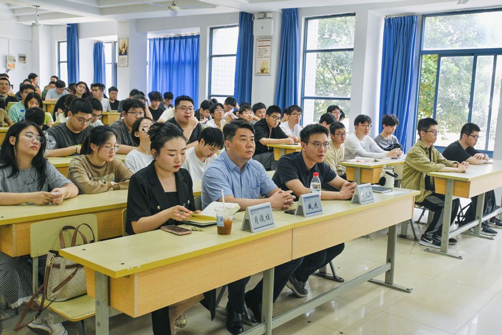 校教务处副处长臧庆教授从国家政策解读、学业发展规划、历年考研数据、科学备考策略等维度深入展开解读,系统剖析了2026届考研形势。臧教授从细节处着手,细致分析了学硕与专硕的区别、讲解了“保底-求稳-冲刺”三层升学目标设置等内容。他建议同学们要积极关注报考院校的招生政策,合理设置升学目标,科学规划复习节奏,为同学们指明了备考方向与行动要点。