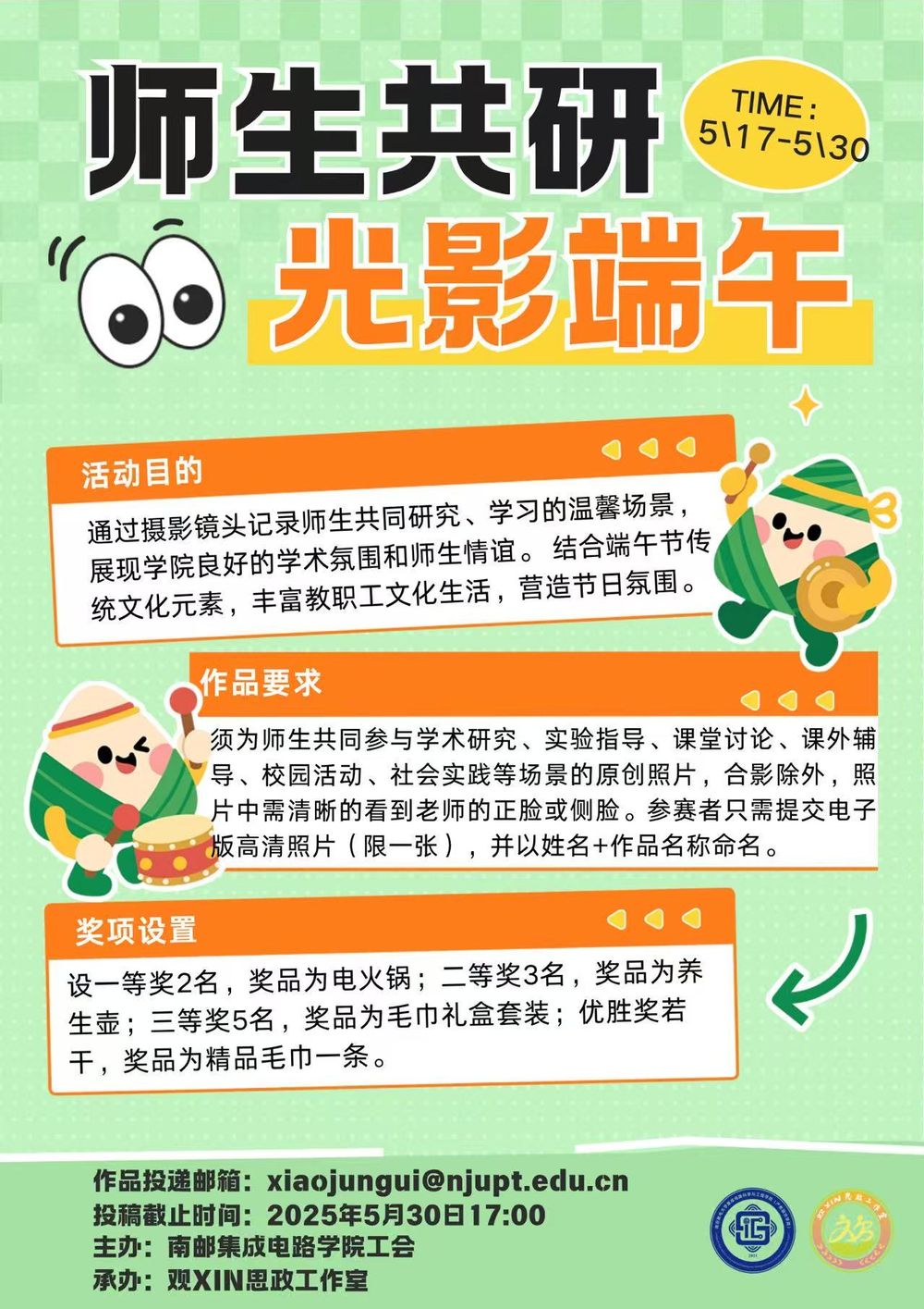 为弘扬中华优秀传统文化,促进师生交流,太阳城app 工会于2025年端午节前夕举办了“师生共研,光影端午”主题摄影大赛。活动得到全院教职工的积极响应,共征集作品50余幅。