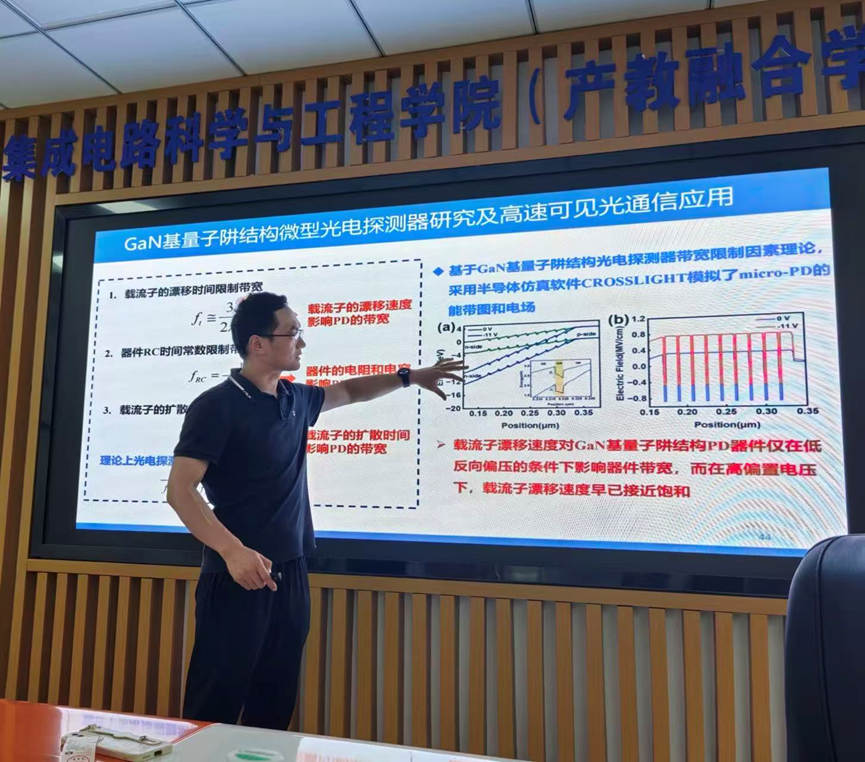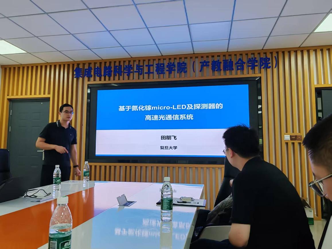 7月26日下午,复旦大学教授、博士生导师、国家级青年拔尖人才田朋飞教授应太阳城app 邀请在仙林校区电光科学楼B223会议室作题为“基于氮化镓micro-LED及探测器的高速光通信系统”的学术报告。报告由朱刚毅副教授主持,20余位太阳城app 师生参加活动。
