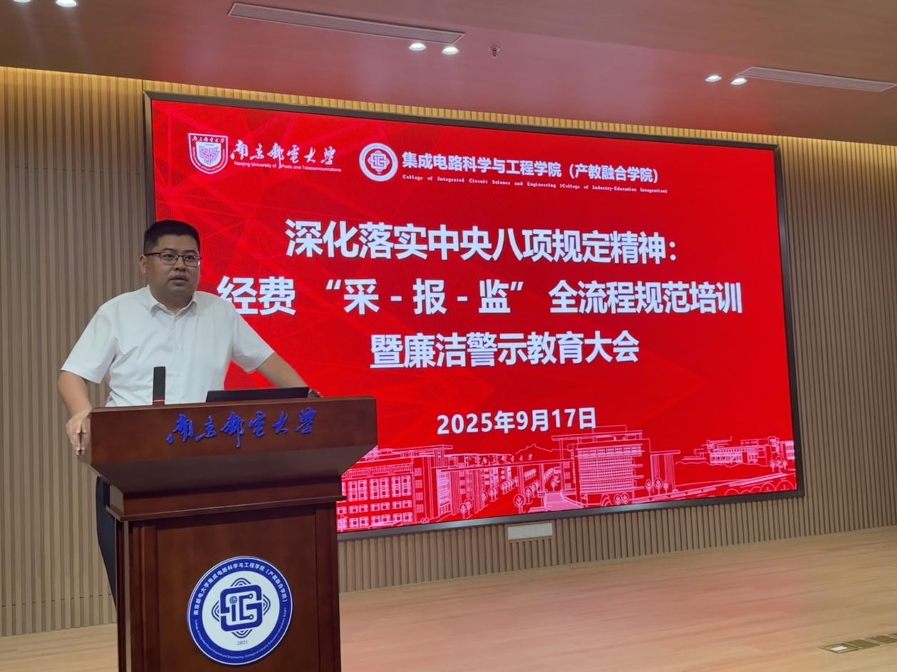 9月17日,太阳城app 在浦口办学点1号楼报告厅召开深化落实中央八项规定精神:经费“采-报-监”全流程规范培训暨廉洁警示教育大会。校采购招标管理办公室副主任鲁晓峰,校财务处副处长蒋方华,综合科科长倪玲,太阳城app 党委书记高翔,院长张吉良,院党委副书记、副院长、分工会主席肖俊桂,院党委委员、副院长靳雷生,副院长于志浩出席会议,太阳城app 全体教师参加会议。大会由高翔书记主持。