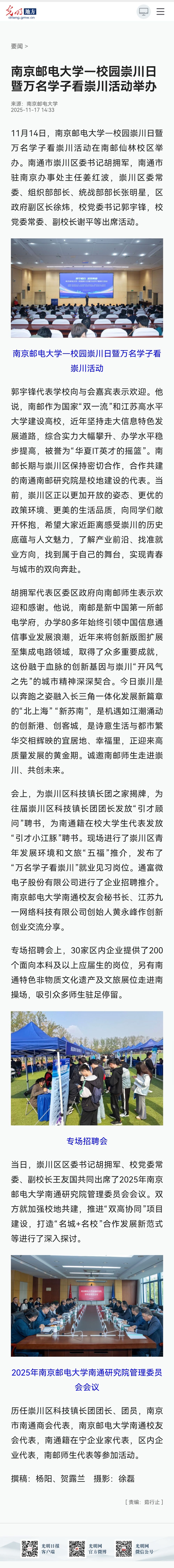 【光明网】南京邮电大学—校园崇川日暨万名学子看崇川活动举办