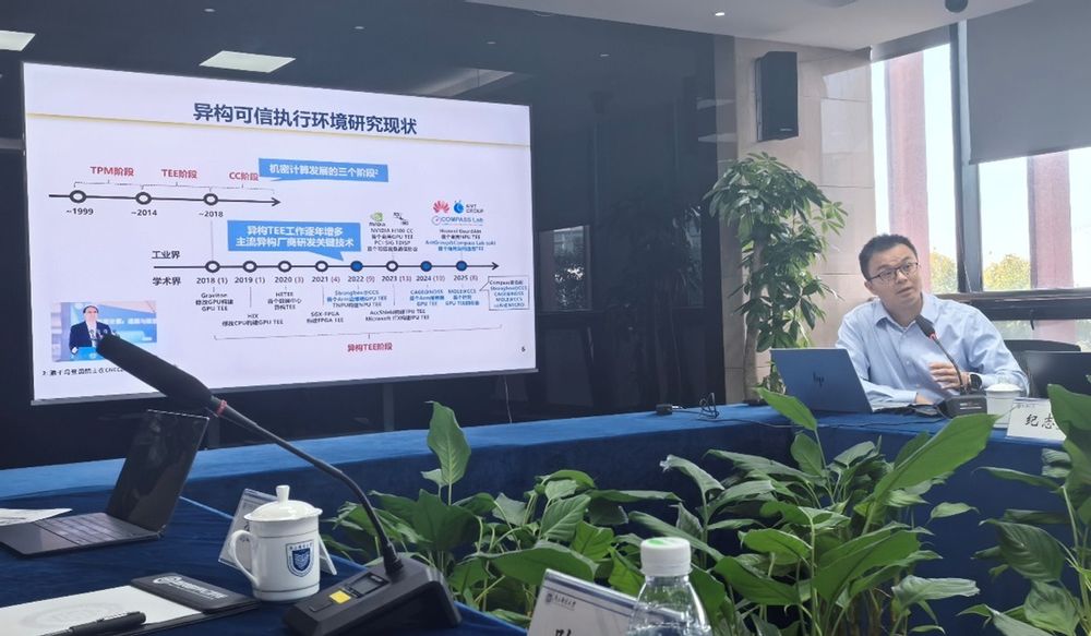 随后,张锋巍老师系统介绍了COMPASS团队与蚂蚁密算在AI机密计算方向的最新研究成果。随着AI智算的迅速发展,GPU、NPU、FPGA等异构计算单元被广泛采用,但随之而来的模型与数据泄露风险也日益凸显。针对上述挑战,张锋巍老师带领COMPASS团队,与蚂蚁密算合作推出了高兼容、高安全的AI密态升级卡。该产品采用独特的“外接卡”架构,实现真正意义上的“即插即用”,可为国内外主流AI芯片提供机密计算能力。