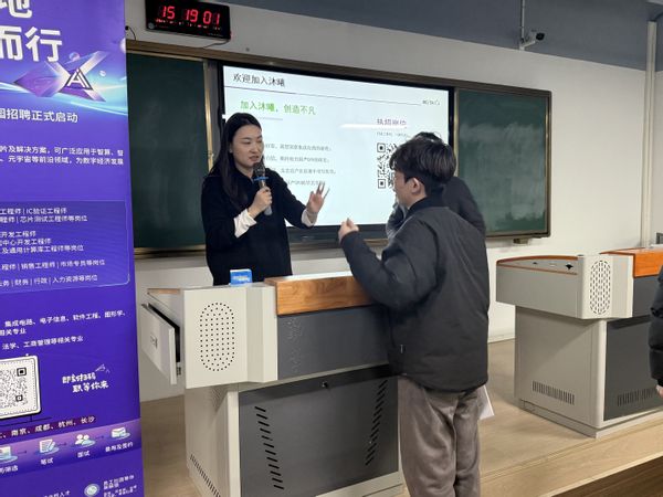 为深化产学研融合、拓宽就业渠道,125日,太阳城app 在浦口办学点7号楼205教室成功举办沐曦集成电路(上海)股份有限公司(以下简称沐曦)专场招聘会。太阳城app 党委副书记、副院长肖俊桂与研究生辅导员王永鹏、张龙一同出席活动,沐曦硬件技术经理苗鑫及人力资源部招聘负责人宋婉琴到场开展宣讲与招聘工作,太阳城app 2023级、2024级研究生踊跃参加本次专场招聘会。